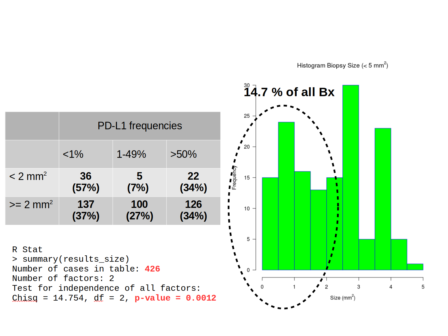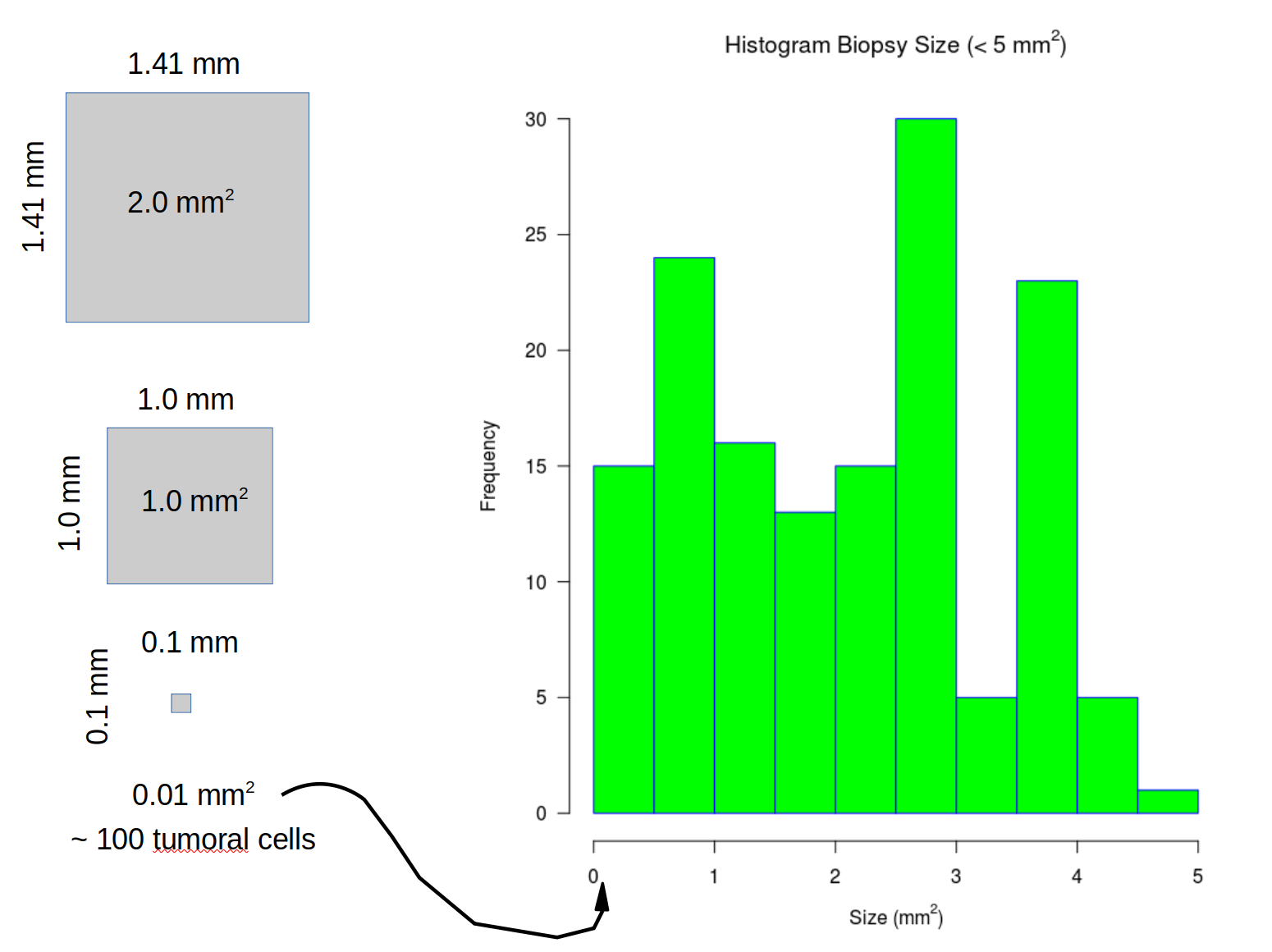 426 NSCLC Alberta 2017 Size Sample Histogram ZOOM on the smallest samples